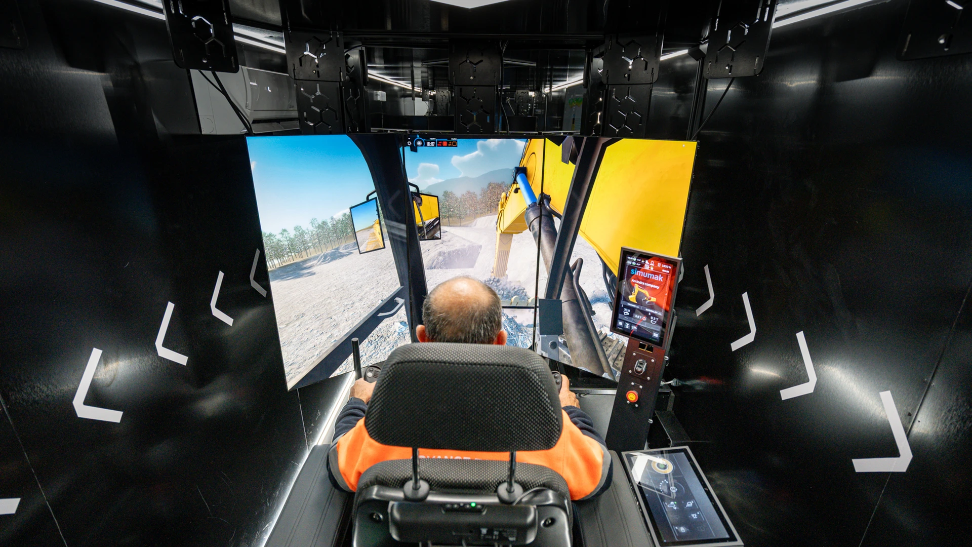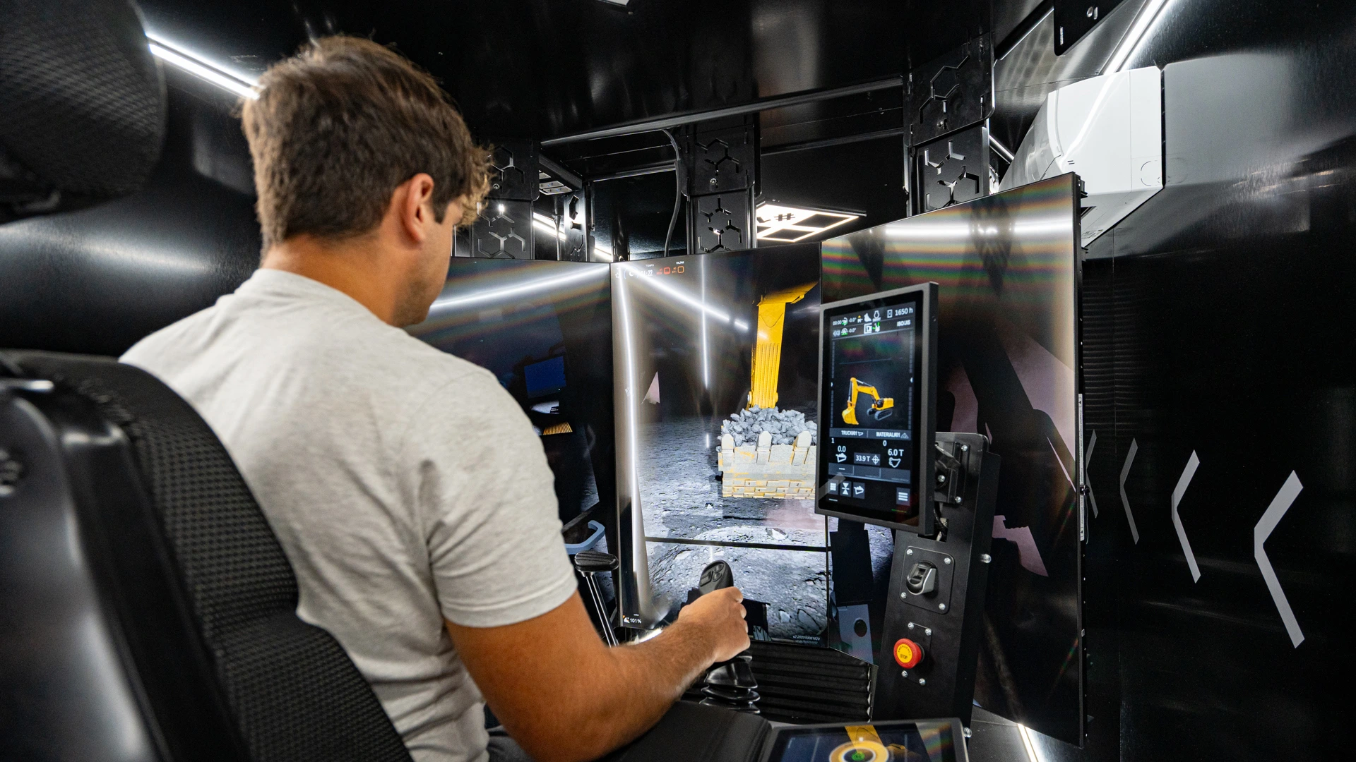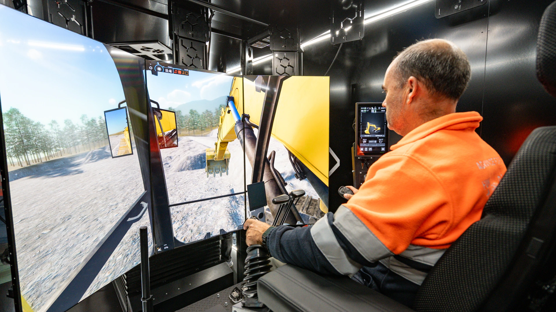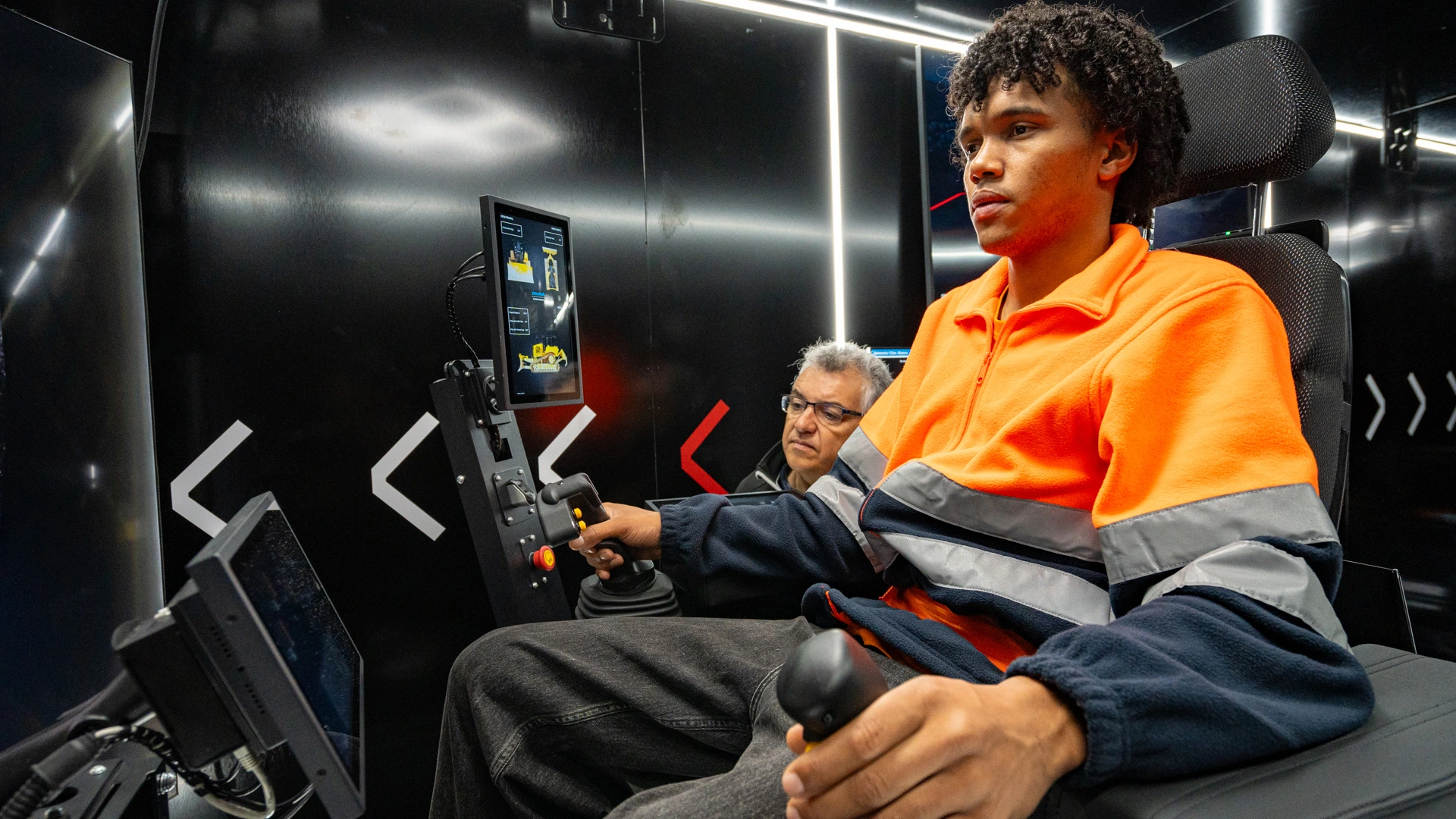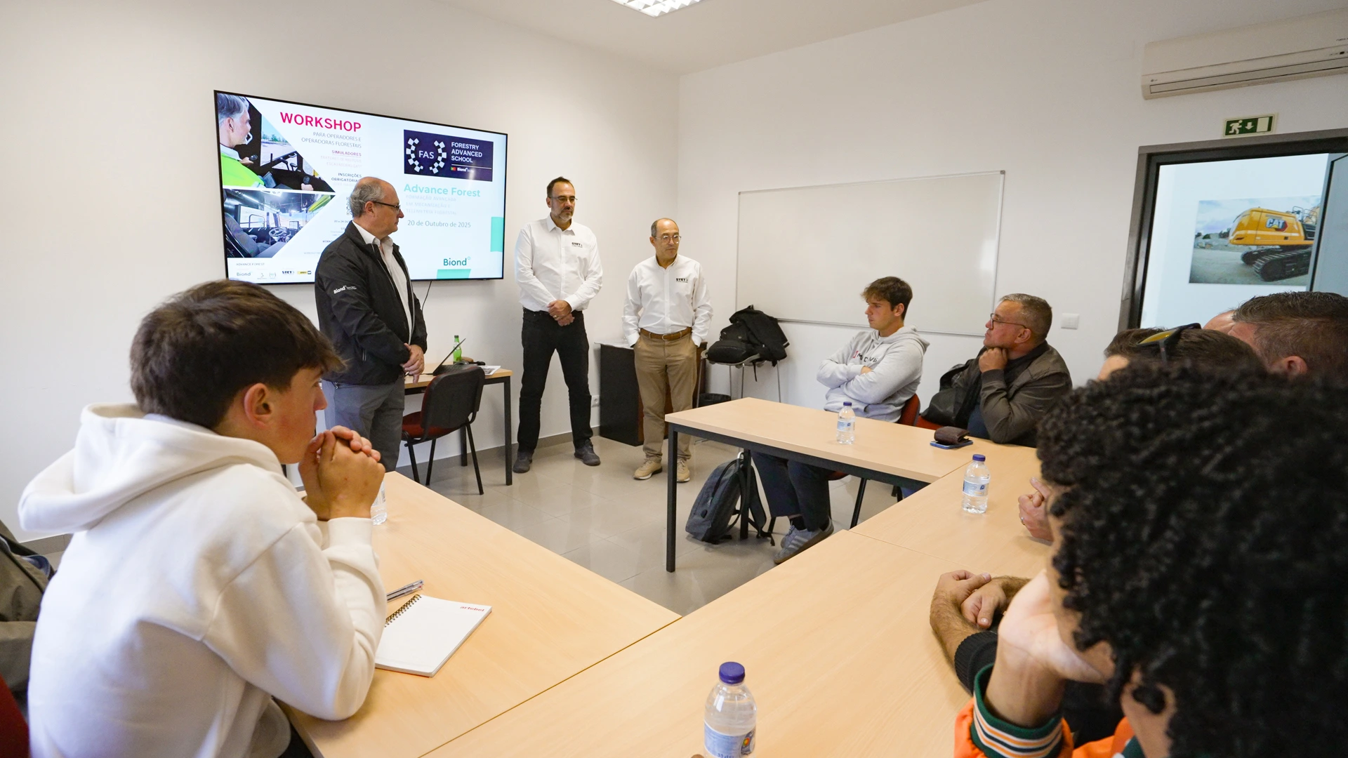 Ao longo das sessões, os participantes treinaram com Simuladores de Escavadoras e Tratores de Rastos Caterpillar®, operando em cenários virtuais que reproduzem com realismo as condições de terreno e as exigências de trabalho no setor florestal.